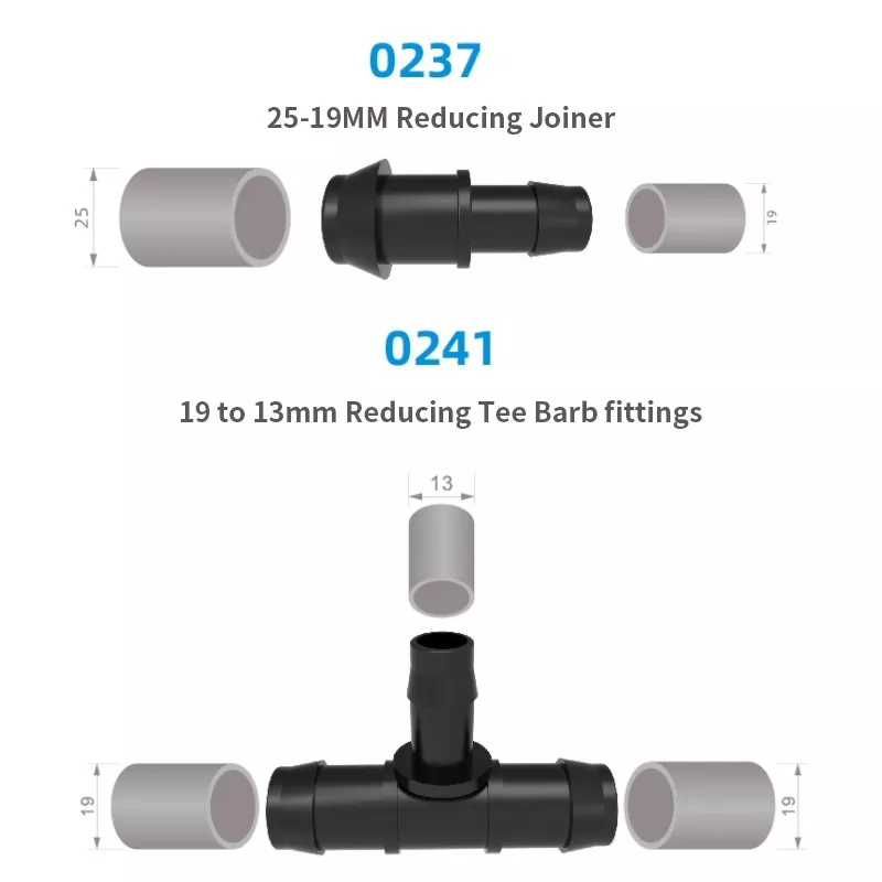13mm/19mm/25mm öntözőrendszer csatlakozók és szerelvények sorozat