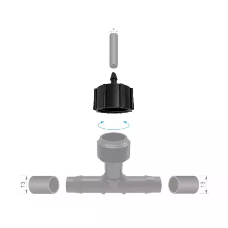 Ez a termék 4 mm-es mikrocsövekkel együtt használható saját öntözőrendszer kiépítéséhez