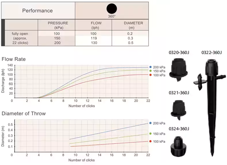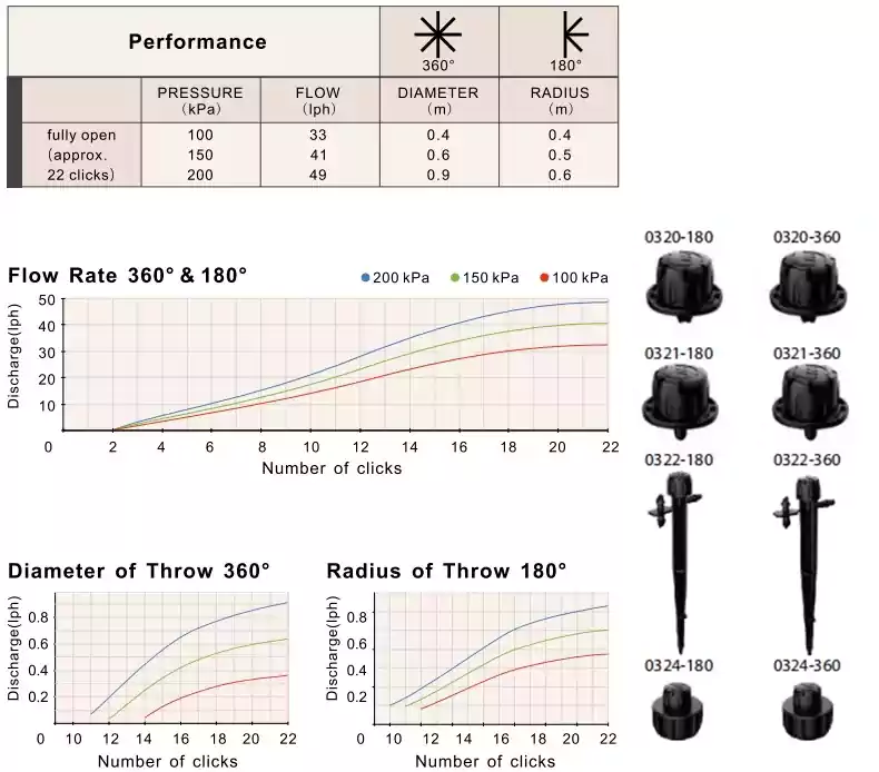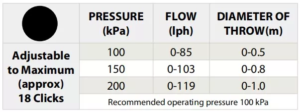 A Mini Bubbla sapka elforgatása lehetővé teszi az áramlási sebesség és a dobás átmérőjének egyidejű beállítását. Ez az állítható áramlású Twista permetező egységes esernyő mintával, amely gyengéden viszi fel a vizet a növény gyökérzónájára.