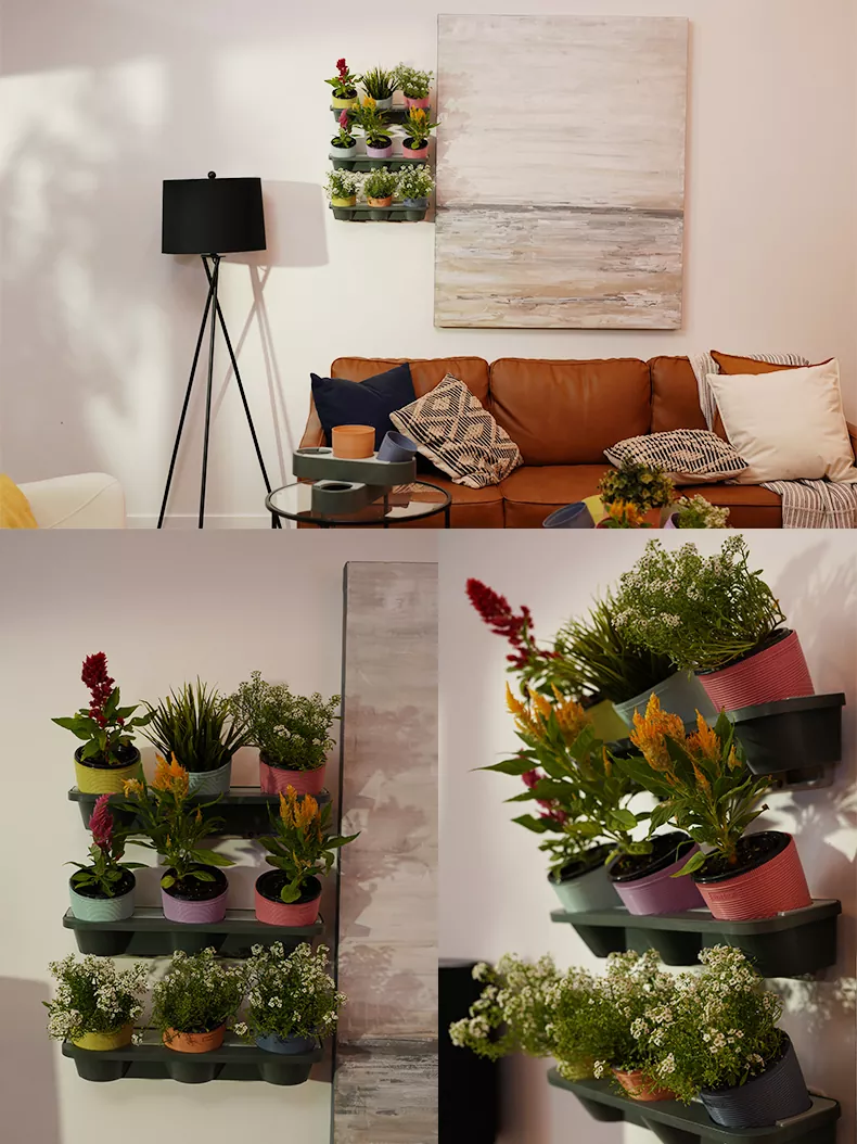 A virágcserepekbe elültetheti kedvenc növényeit vagy zöldségeit. Az öntözés is nagyon kényelmes. Csak vizet vagy tápoldatot kell önteni a víztároló függőedénybe. A virágcserép alja üreges kialakítású, így jobban felszívja a vizet.