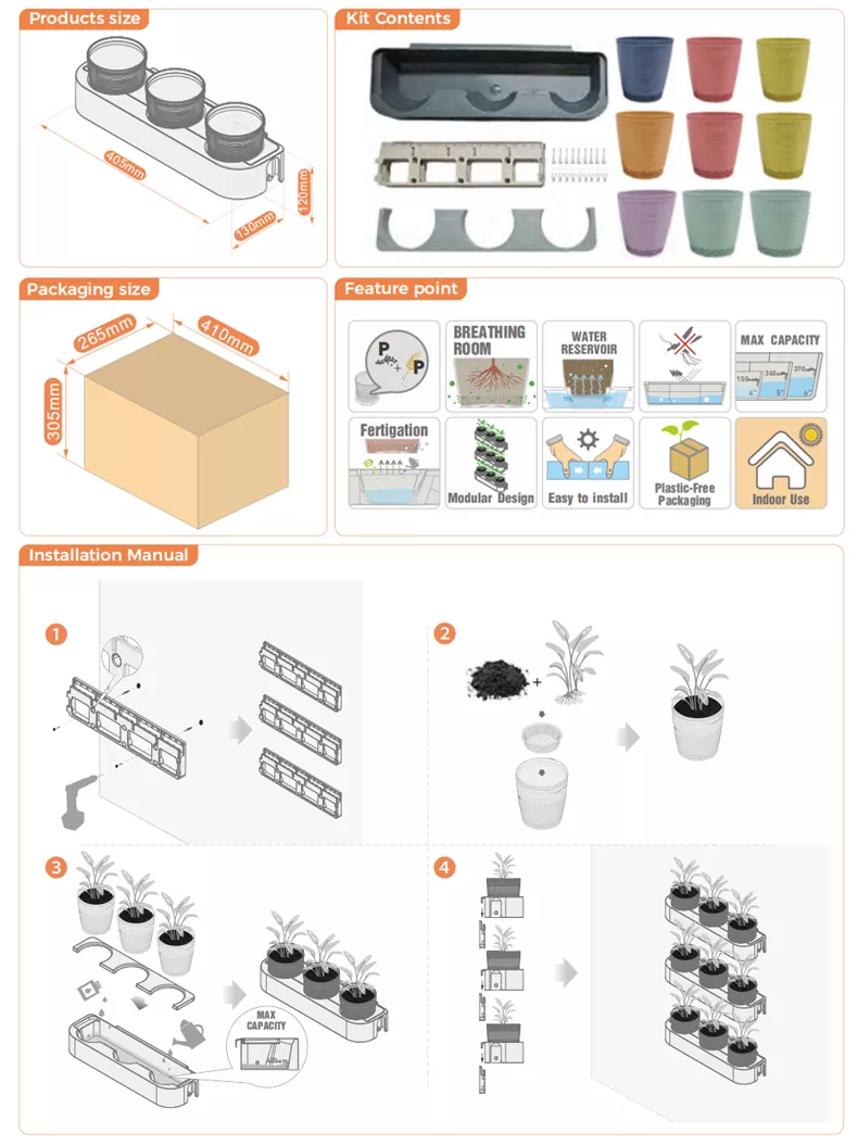 A függőleges kertészkedés népszerű helytakarékos kertészeti módszer a növények kis helyen történő termesztésére. A Watex búzaszalmából készült műanyag függőleges kert ideális falra szerelhető vetőgép a városlakók számára, hogy függőleges kertet építsenek otthonukon belül és kívül.