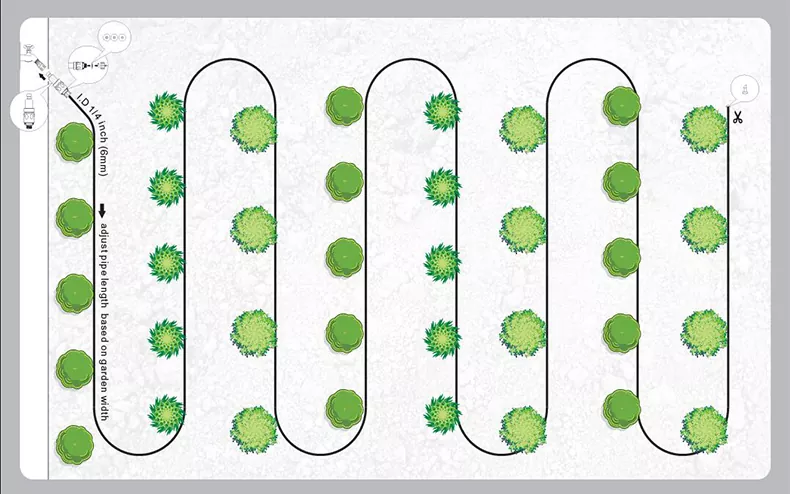 Ez a kerti csepegtető tömlő ideális pázsitokhoz, veteményeskertekhez, virágágyásokhoz és más beültetett területekhez, különösen alkalmas sorművelt növények precíziós öntözésére.