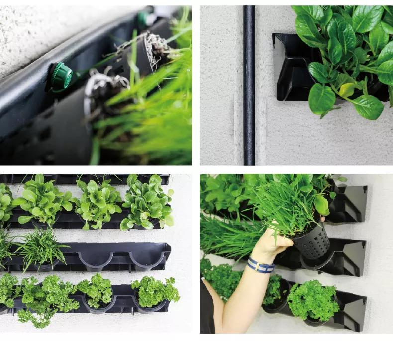 A PP anyagú 3 hüvelykes belső ültetőgép a függőleges zöldfalrendszerünkhöz és a pultkertészeti zöldfalkészletünkhöz illeszthető, további módosítások nélkül egyszerűen összeszerelhető, szabványos ültetőkonténereket biztosítva függőleges zöldítéshez és pultkertészeti projektekhez. A 3 hüvelykes méret igényesen megtervezett, nem foglal túl sok helyet, és nem elégíti ki a kis növények növekedési igényeit.
