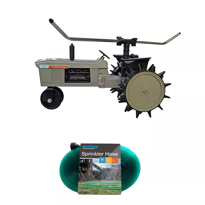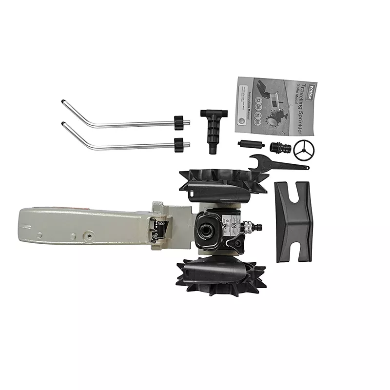 A csapvíznyomással működő Traveling Sprinkler öntözőpermetező a meglévő kerti tömlő által meghatározott utat követi az öntözéshez. Befejezéskor automatikusan megáll az előre beállított pozíciókban, így ideális öntözési partner a kiterjedt pázsitokhoz vagy zöldövezetekhez. A nagy teherbírású öntöttvas test kültéri festékkel biztosítja a tartósságot és a masszívságot. Teljesen automatizált a kihangosított használathoz, könnyed, kényelmes és környezetbarát.