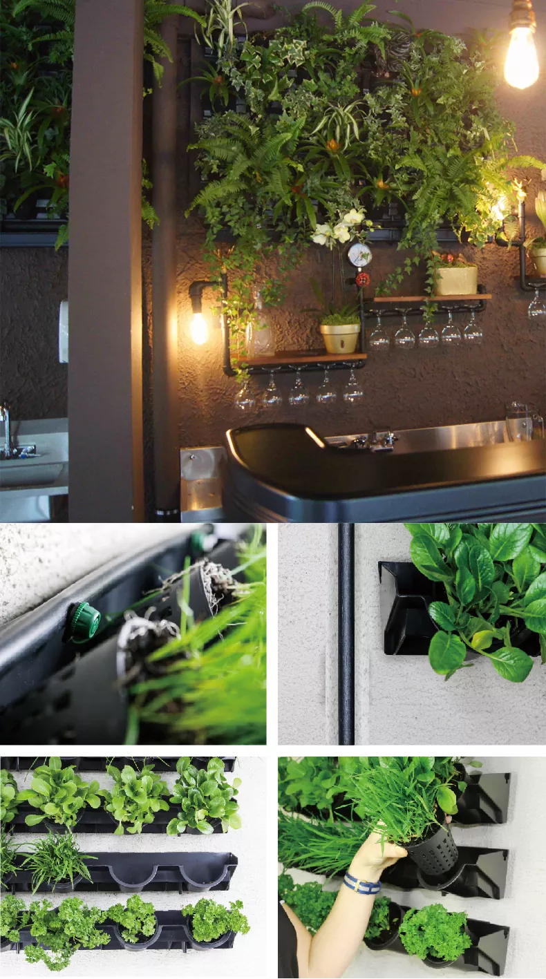 Könnyedén hozhat létre zöld falakat bármilyen felületen az ültetőeszközök sokoldalú kombinációjával, amelyek tökéletesek virágok, fűszernövények, pozsgások, zöldségek és egyebek termesztéséhez – fokozva a zöldfelületet és az esztétikai megjelenést a terében.